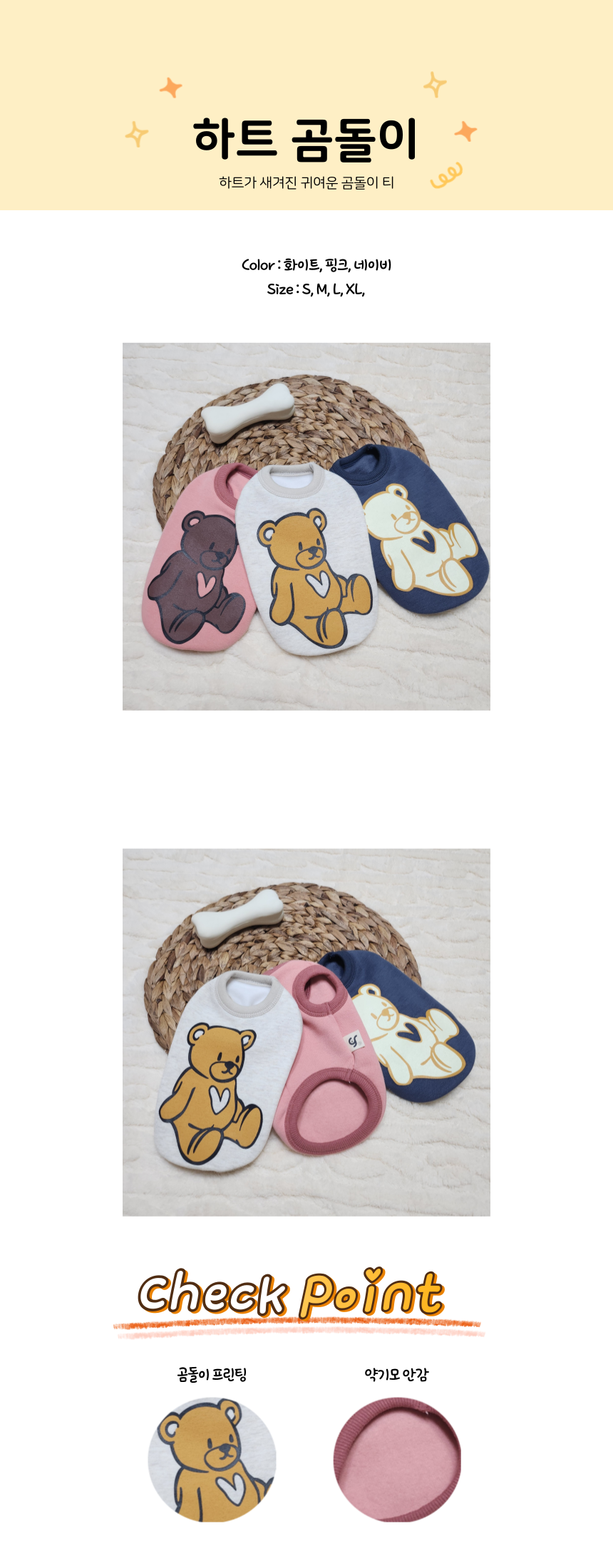 하트가 새겨진 귀여운 곰돌이 기모 티 ʕ •ᴥ•ʔ