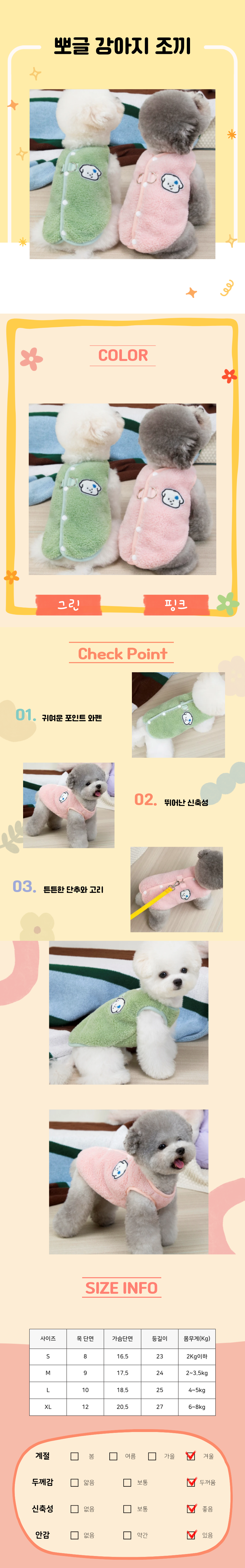 귀여운 강아지 와펜 겨울 조끼